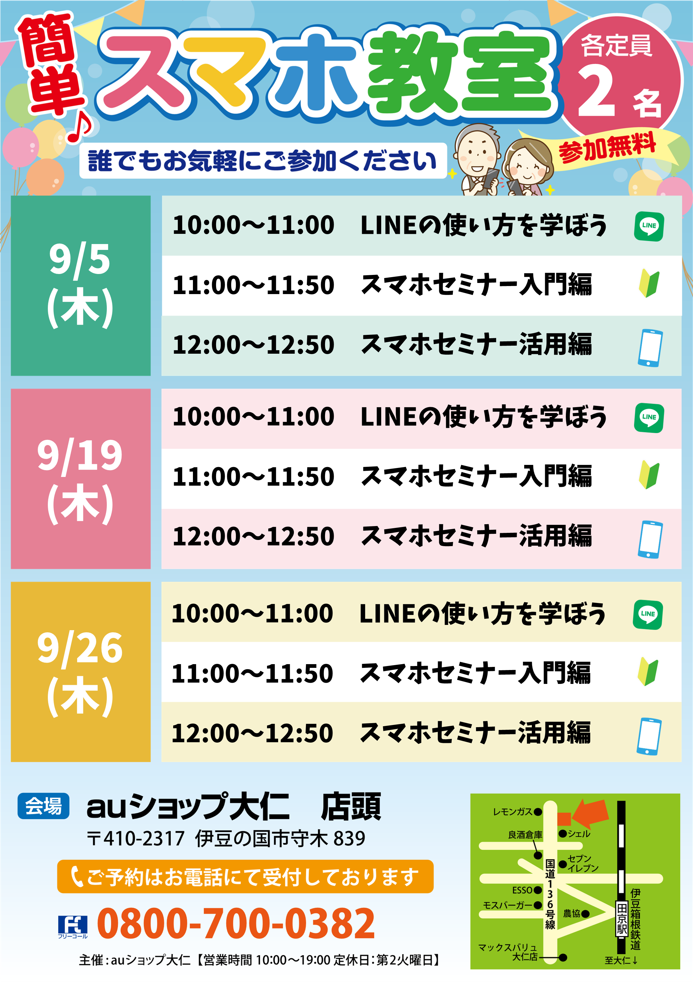 無料で「スマホセミナー」を開催しております。お気軽にお問い合わせください。