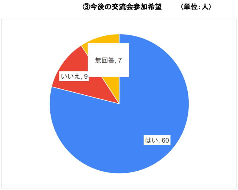 交流会に参加した感想としては「非常に良かった・良かった」が約90%であった。