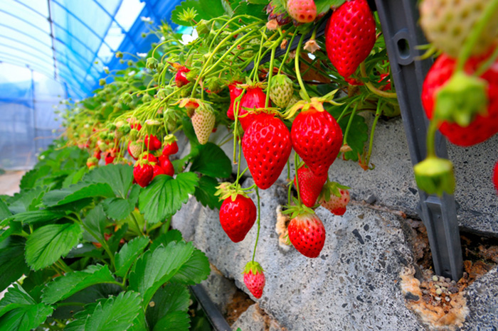 静岡市駿河区の久能海岸沿い、国道150号線は通称「いちご海岸通り」。斜面に積み上げられた石垣を利用したいちごの栽培スタートは、なんと明治時代。ビニールハウスもなかった頃から、静岡の温暖な気候と、日中の熱を蓄える石垣の効果で、冬場でも甘いいちごが収穫可能になりました。直接に、また海からの反射で、たっぷりと日の光を浴びたいちご。石垣栽培は全国的に見ても珍しく、静岡ならではの気候と石垣を積み上げる技術の掛け合いで誕生したものです。気になる栄養価も、ビタミンC、食物繊維、葉酸が豊富です。低カロリーなのも嬉しいポイント。