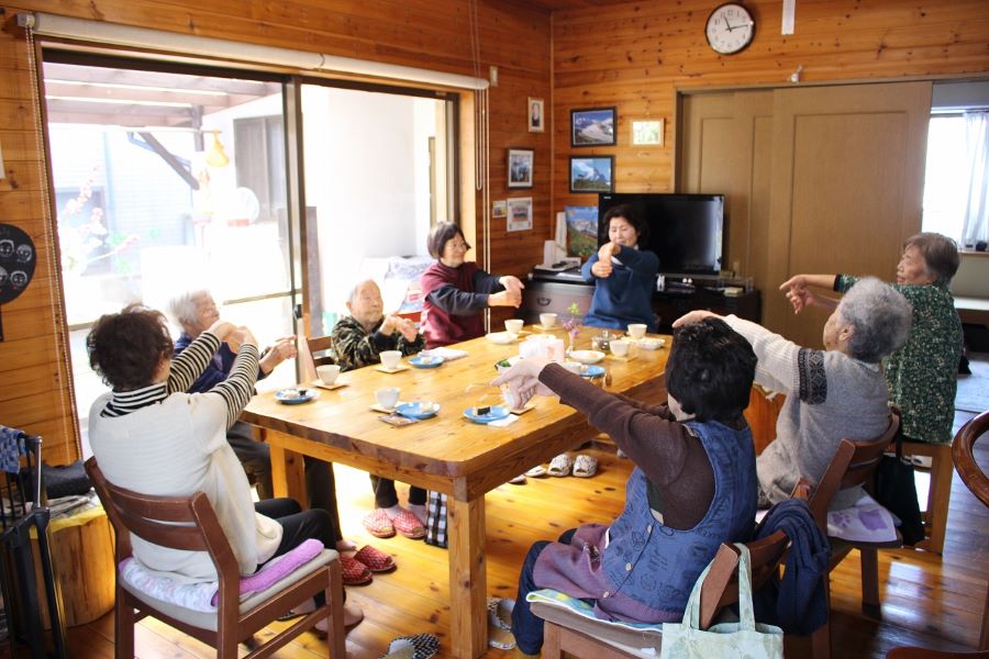 以前のデイサービス会場を活かした、自宅開放型の居場所です。フレイル予防の為、おしゃべりや体操などで楽しく過ごします。(送迎不可)